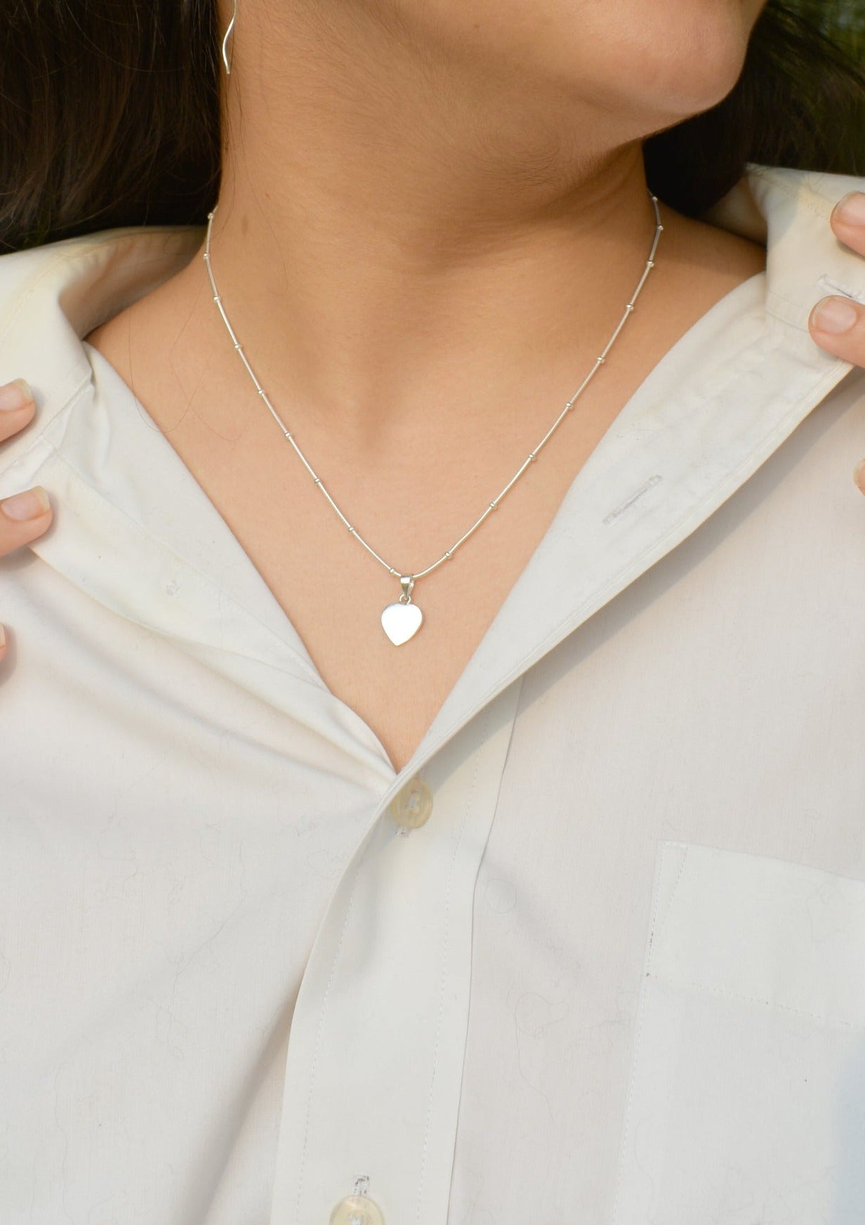 This pendant and chain combination is handmade in 925 Sterling silver. You have the option to personalize the heart pendant, and here's how-