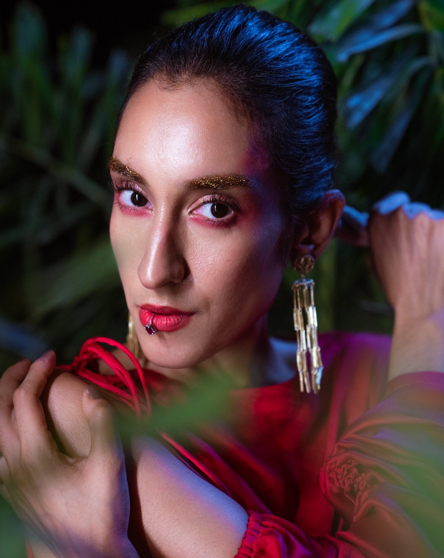This playful lip accessory, crafted by hand from 925 sterling silver, features a bright red onyx stone at its heart and adjusts easily—no piercing needed!